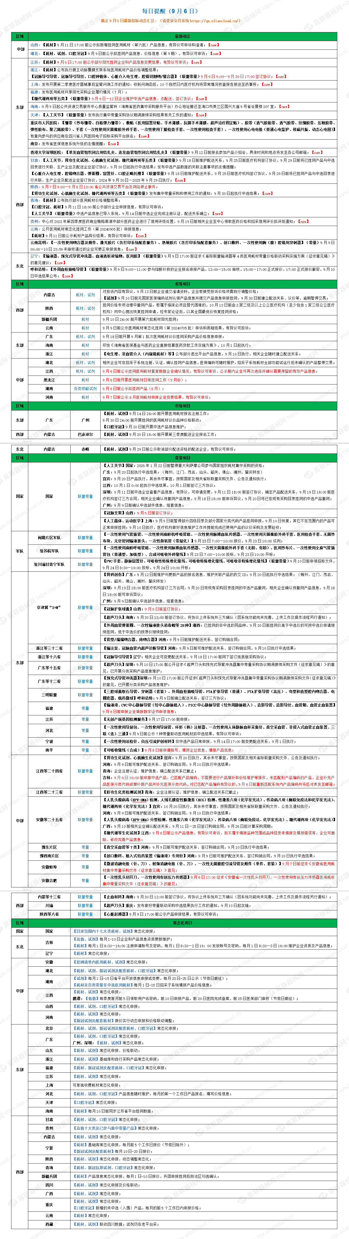 1、江西:【耗材、试剂】9月6日前公示挂网医用耗材重复数据企业确认情况,有异议可申诉,公示期内企业可再次选择并确认需要保留的有效产品信息;